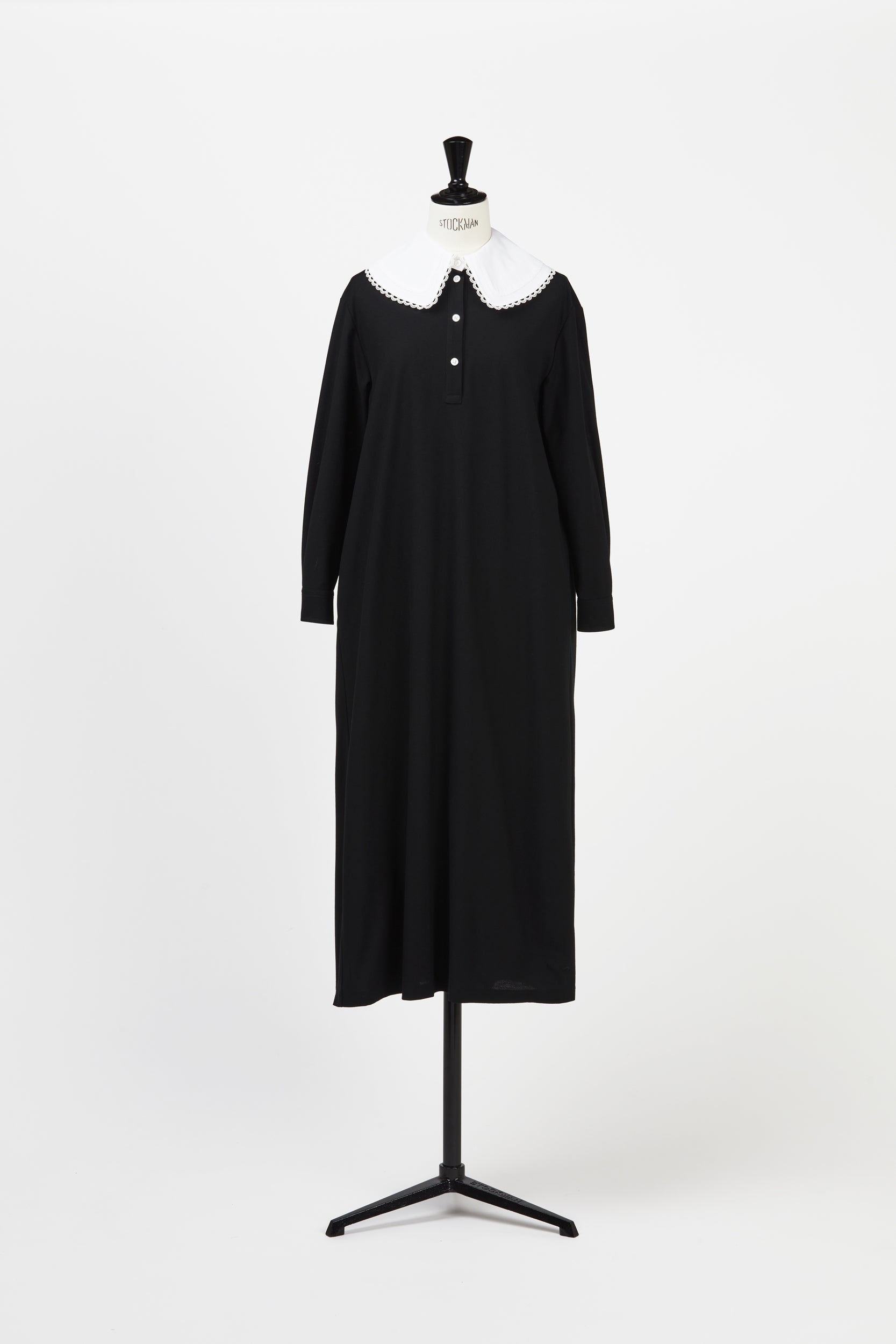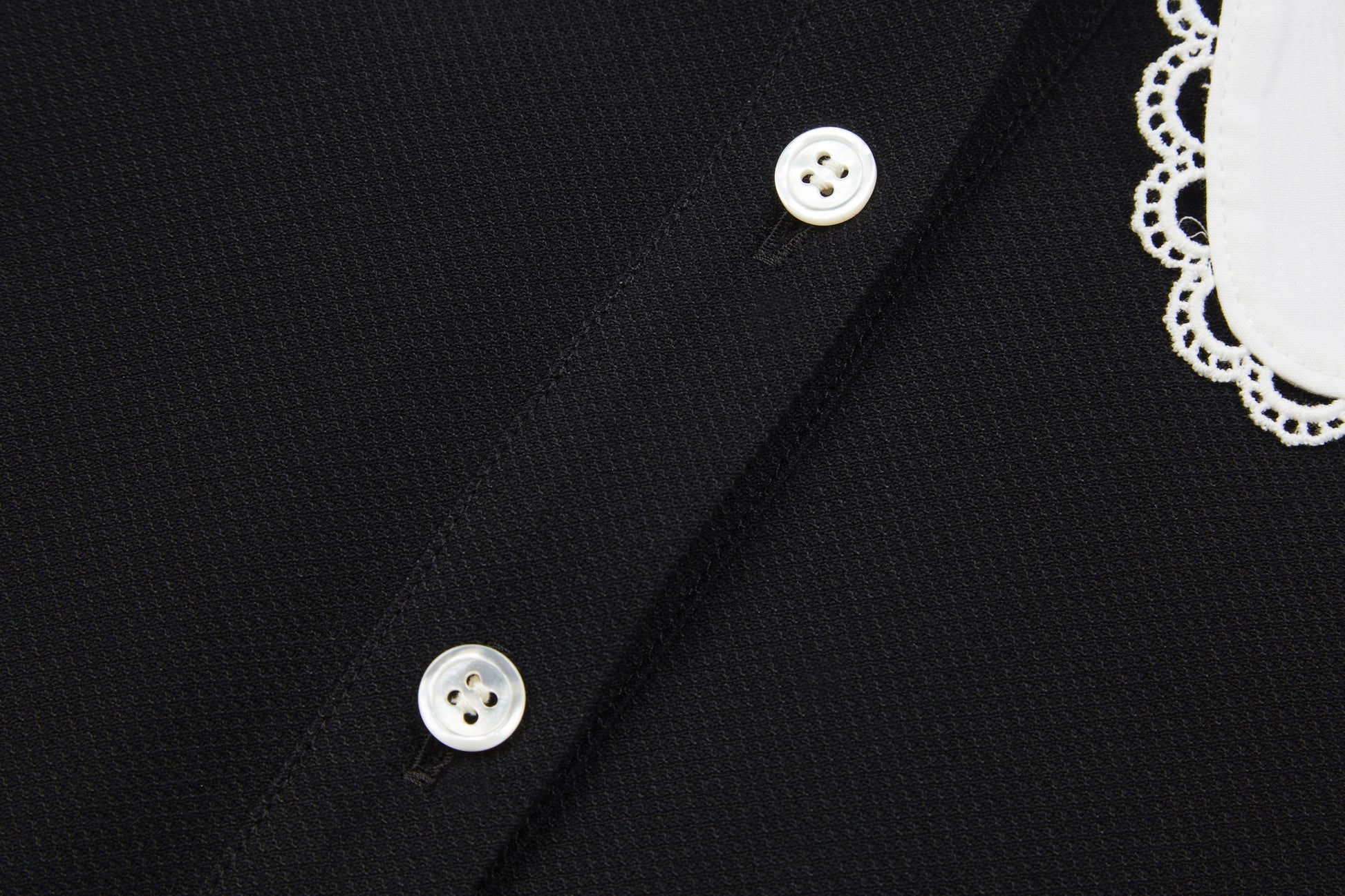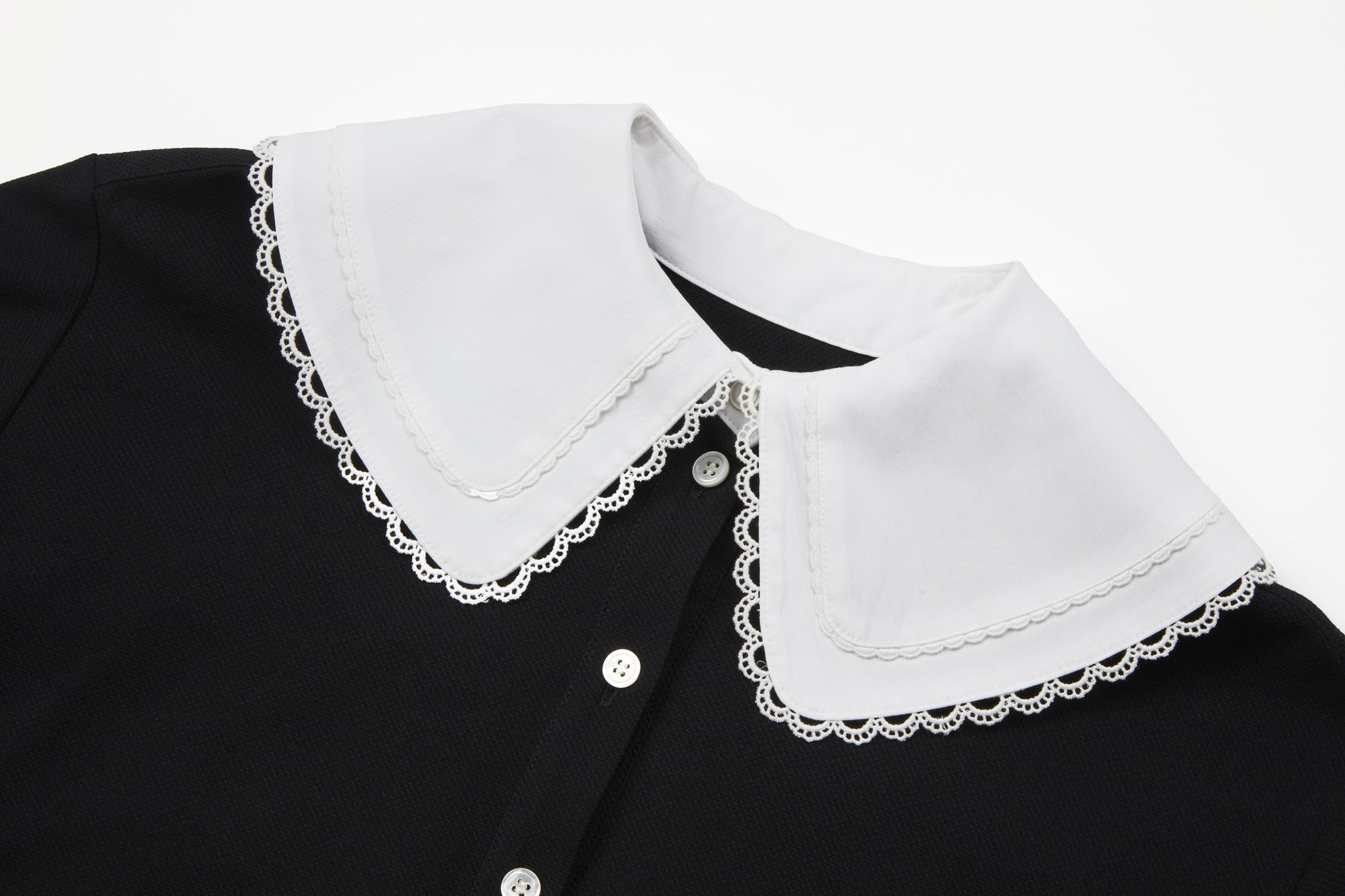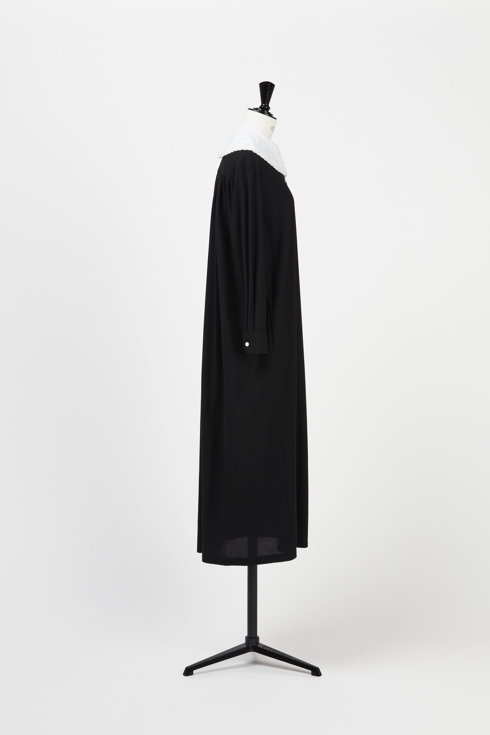黒い生地は夜の余白のように静かで 彼女は白い大きな襟を指でととのえながら